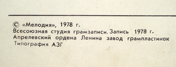 - Record Company – Всесоюзная Студия Грамзаписи