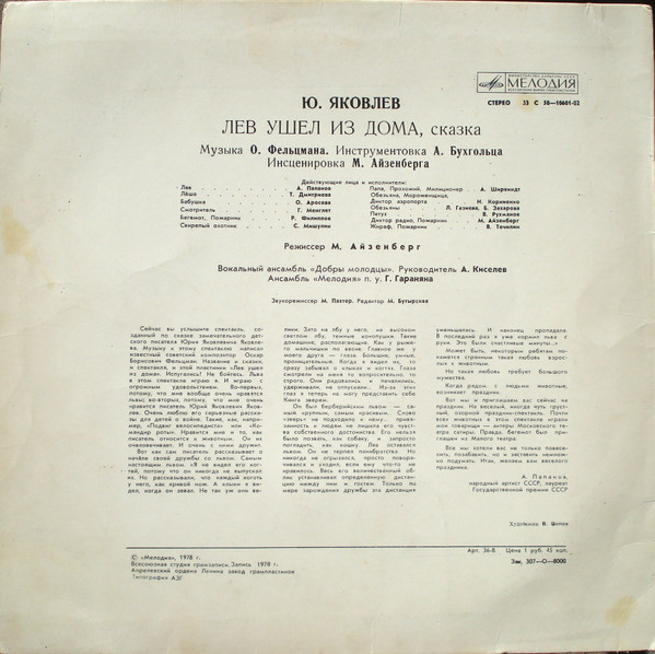 - Voice Actor [Лев] – Анатолий Папанов