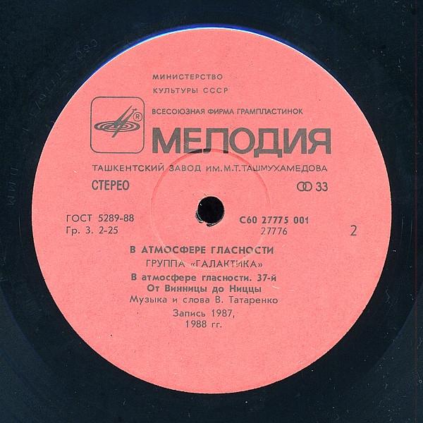 - Manufactured By – Ташкентский Завод Грампластинок им. М. Т. Ташмухамедова