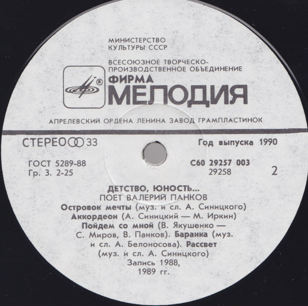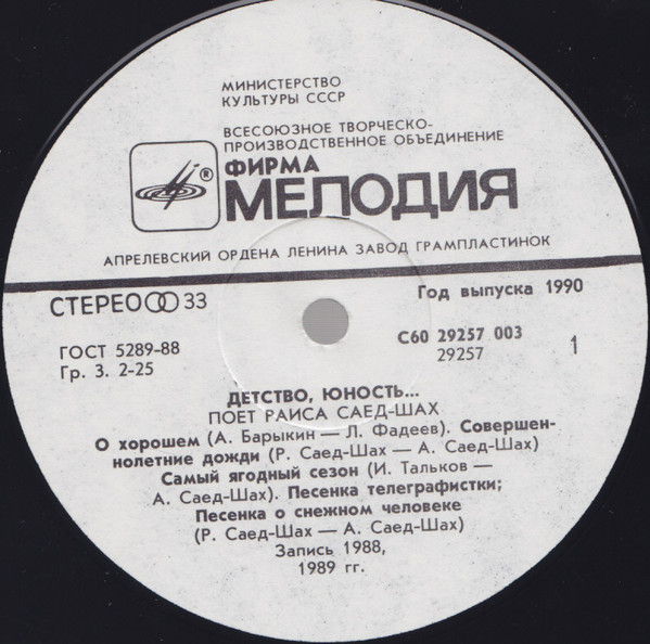 - Record Company – Всесоюзная Студия Грамзаписи