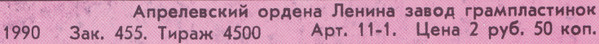 - Pressed By – Апрелевский Завод Грампластинок