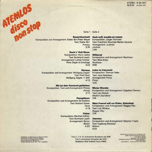- Pressed By – VEB Deutsche Schallplatten Potsdam-Babelsberg
