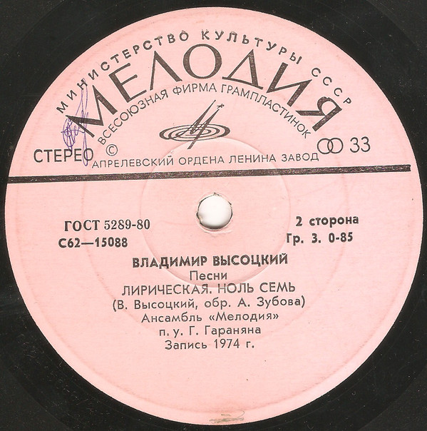 Мелодия С62-15087-88, Апрелевский завод.
