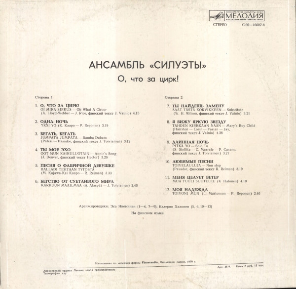 LP Силуэты - 1979 "О, что за цирк!"