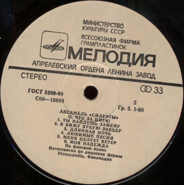 | B6 | Моя Надежда = Toivoni Mun Composed By – Lasse Mårtenson