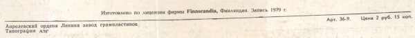 - Pressed By – Апрелевский Завод Грампластинок