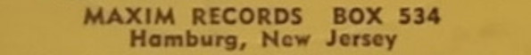 Maxim Records Box 534 Hamburg, New Jersey U.S.A.