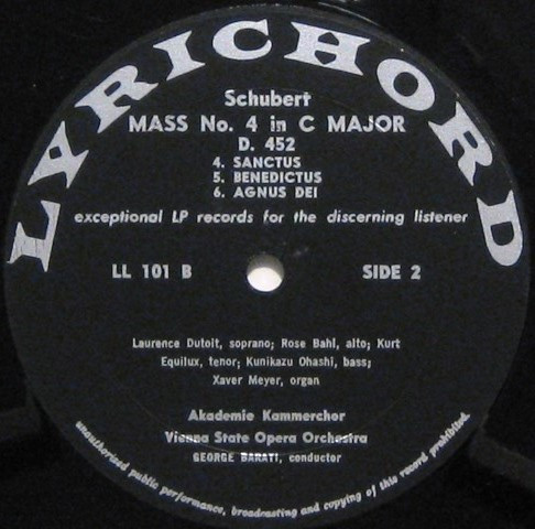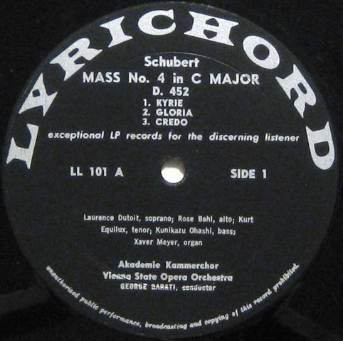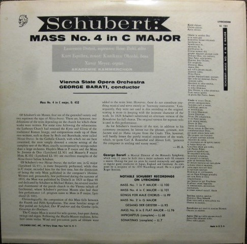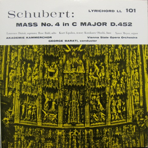 Franz Schubert Wiener Akademie Kammerchor Orchester Der Wiener Staatsoper Kurt Equiluz Xaver Meyer Laurence Dutoit Rose Bahl George Barati Kunikazu Ohashi – Mass No. 4 In C Major D.452