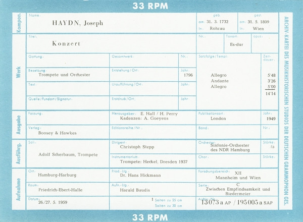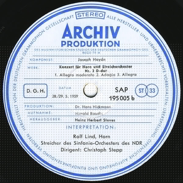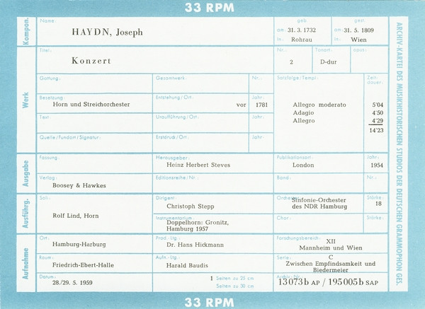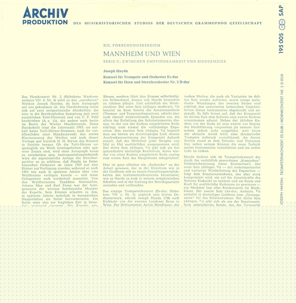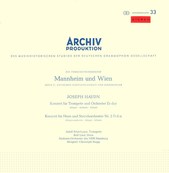Joseph Haydn Rolf Lind Adolf Scherbaum Christoph Stepp NDR Sinfonieorchester – Konzert Für Trompete Und Orchester Es-dur / Konzert Für Horn Und Streichorchester Nr. 2 D-dur