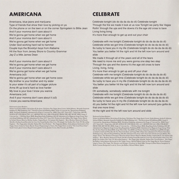 - Phonographic Copyright (p) – Jonas Brothers Recording, LLC