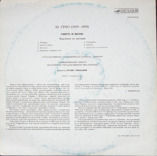 Charles Gounod Moscow Philharmonic Orchestra Государственная Академическая Капелла Армянской ССР Оганес Чекиджян – Смерть И Жизнь (Фрагменты Из Оратории)