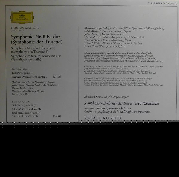 Gustav Mahler Symphonie-Orchester Des Bayerischen Rundfunks Rafael Kubelik – Symphonie Nr. 8 "Symphonie Der Tausend" · "Symphony Of A Thousand"
