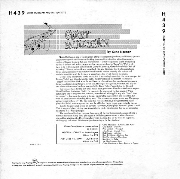 Gerry Mulligan Tentette – Gerry Mulligan And His Ten-Tette