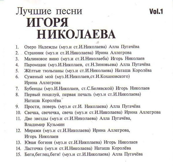 Лучшие Песни Игоря Николаевa Vol.1