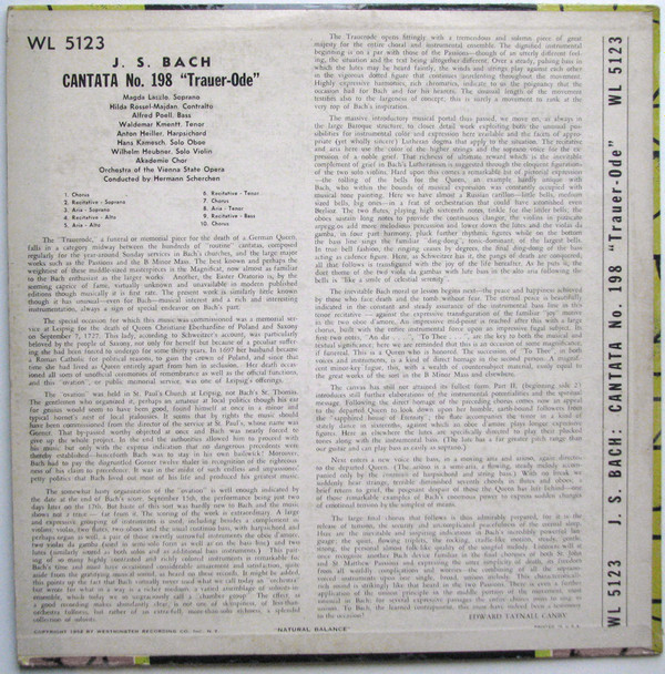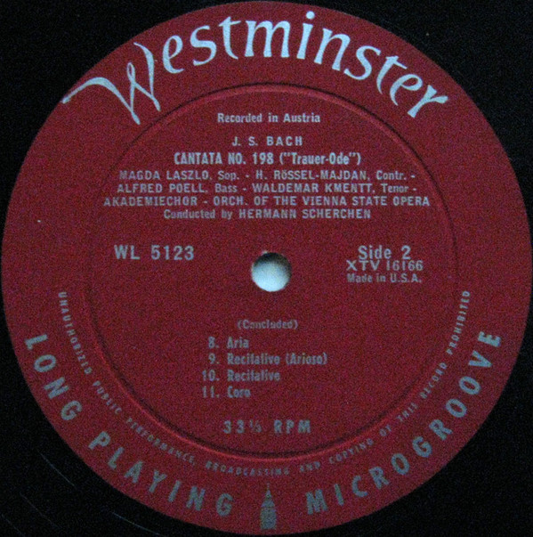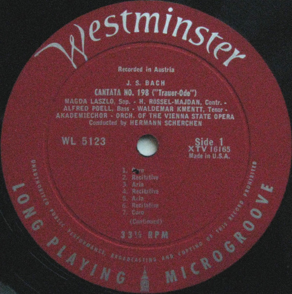 Johann Sebastian Bach Wiener Akademie Kammerchor Orchester Der Wiener Staatsoper Hermann Scherchen Hilde Rössel-Majdan Waldemar Kmentt Magda Laszlo Alfred Poell – Cantata No. 198 ("Trauer-Ode")