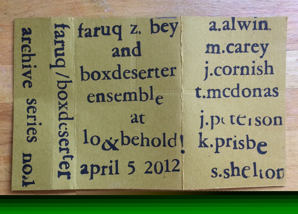 Faruq Z. Bey – At Lo & Behold - April 5 2012 (Archive Series No. 1)