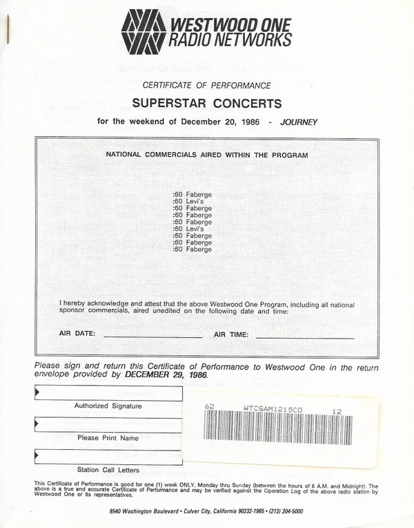 | Лейбл: | Westwood One – SS 86-G |