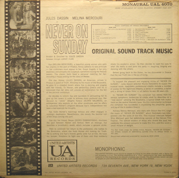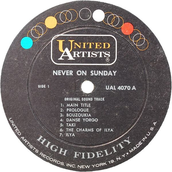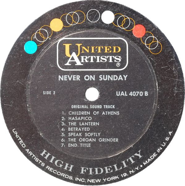 | B7 | End Title - Never On Sunday |