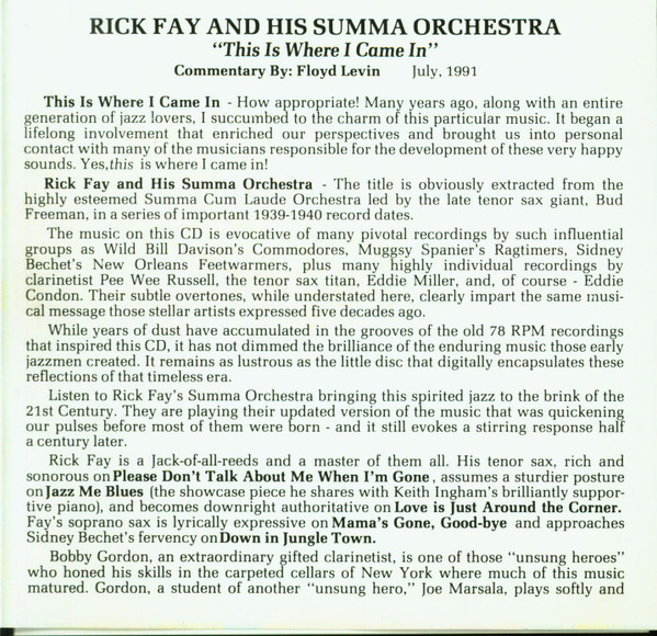 Rick Fay And His Summa Orchestra – This Is Where I Came In