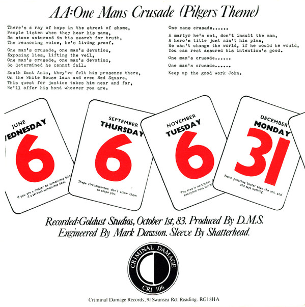 | AA | One Mans Crusade (Pilgers Theme) |