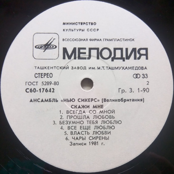 - Pressed By – Ташкентский Завод Грампластинок им. М. Т. Ташмухамедова