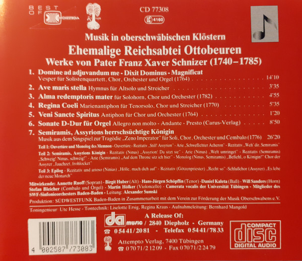 Franz Xaver Schnitzer – Benediktinerabtei Ottobeuren. Werke Von Franz Xaver Schnizer (1740-1785)
