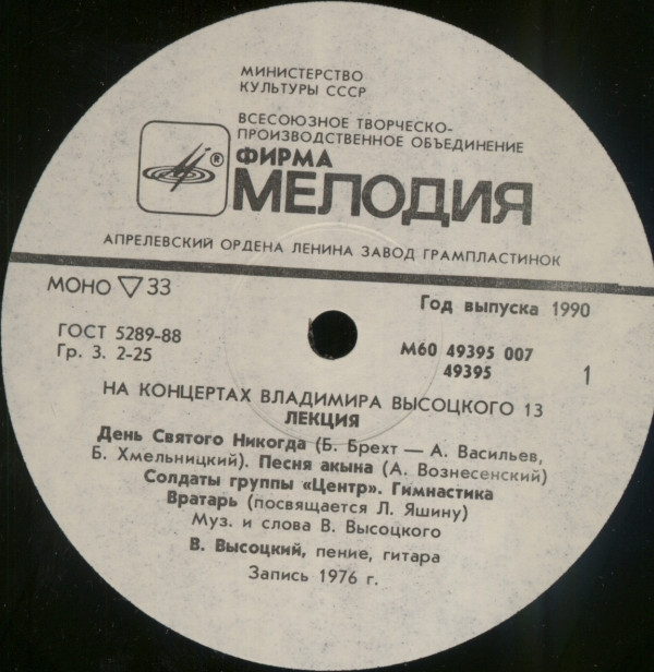 - Recorded By – Всесоюзная Студия Грамзаписи