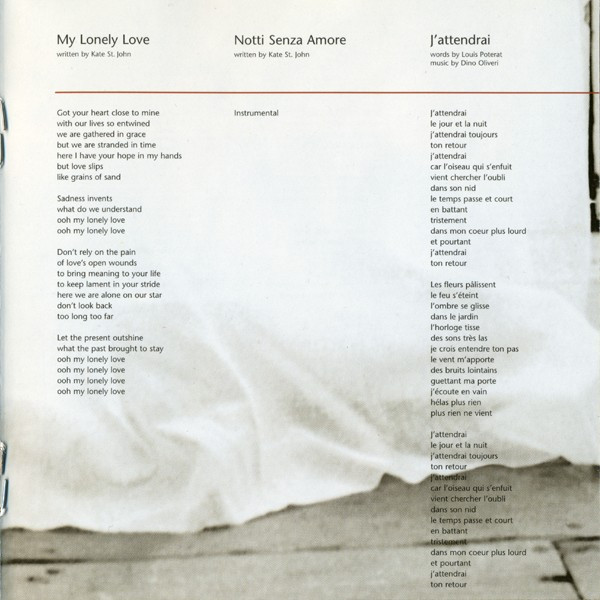 Acoustic Guitar – Simon Nicol Arranged By – Joseph Racaille Arranged By – Kate St. John Double Bass – Chris Laurence Drums – Jean-Pierre Arnoux Flute – Andrew Findon Lap Steel Guitar – Cyril Lefebvre Strings – Alhambra (2) Vibraphone – Teena Lyle Vocals, Oboe, Cor Anglais – Kate St. John Written-By – Kate St. John |