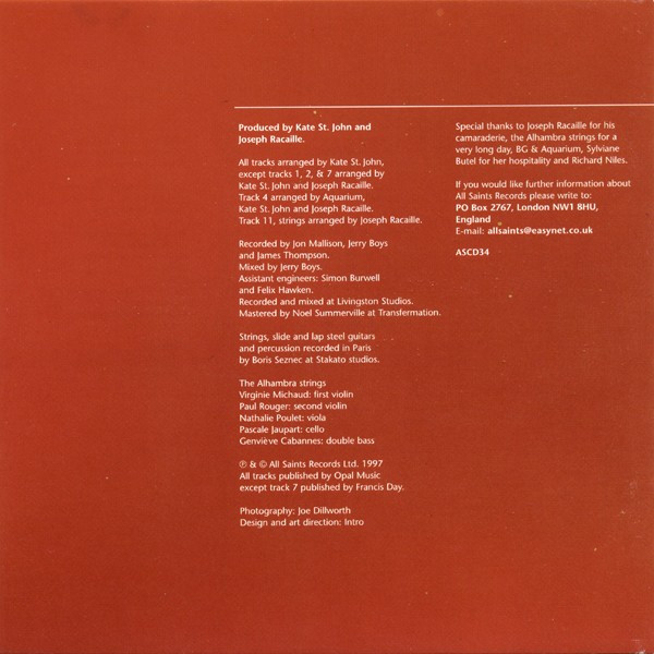 Arranged By – Kate St. John Double Bass – Chris Laurence Drums – Jean-Pierre Arnoux Guitar – Matt Backer Keyboards – Roger Eno Strings – Alhambra (2) Vocals, Cor Anglais, Piano – Kate St. John Written-By – Kate St. John |