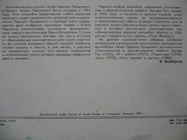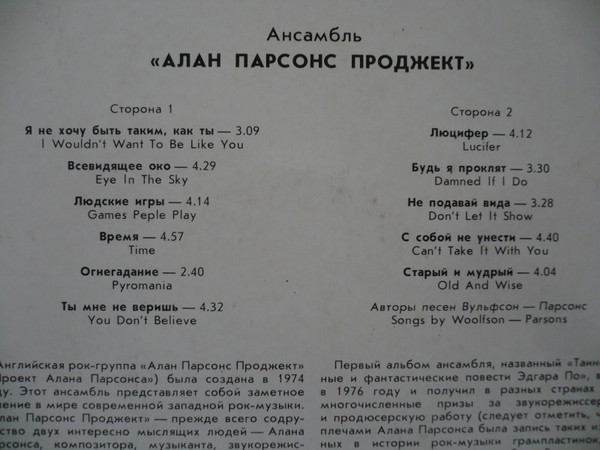 - Songwriter [Авторы Песен = Songs By] – Alan Parsons