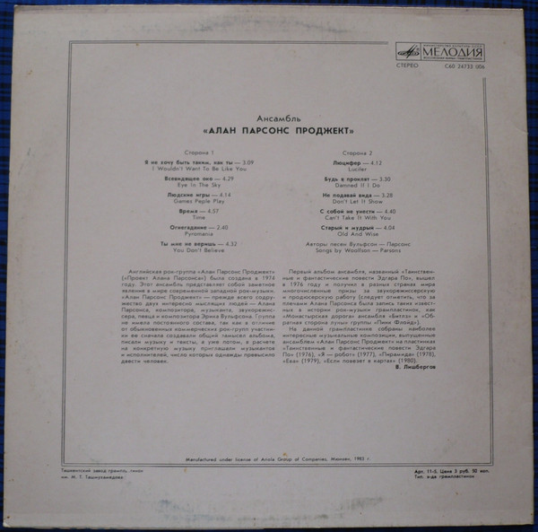 | Лейбл: | Мелодия – С60 24733 006 |