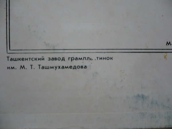 - Pressed By – Ташкентский Завод Грампластинок им. М. Т. Ташмухамедова