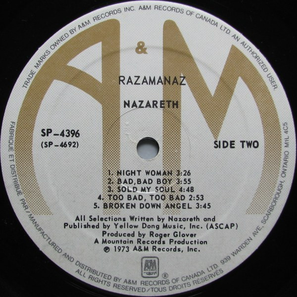 - Manufactured By – A&M Records Of Canada Limited