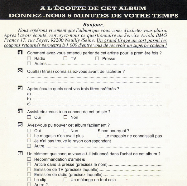 | Лейбл: | Ariola – 74321172922 BMG France – 74321172922 |