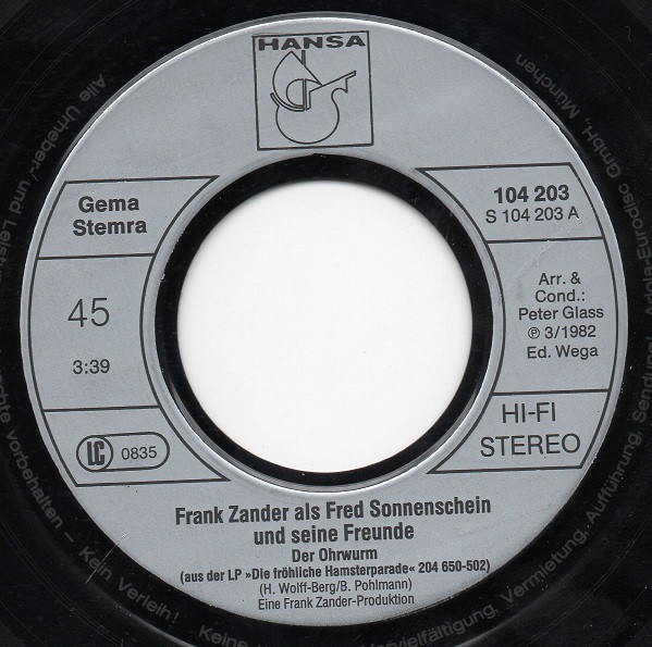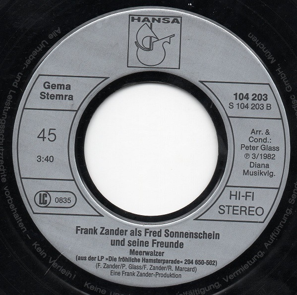 Frank Zander Fred Sonnenschein Und Seine Freunde Written-By – René Marcard Written-By – Peter Glass Written-By – Frank Zander |