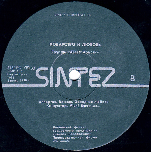 | Лейбл: | Sintez Records – 1-004-С-6 RiTonis – 1-004-C-6 |