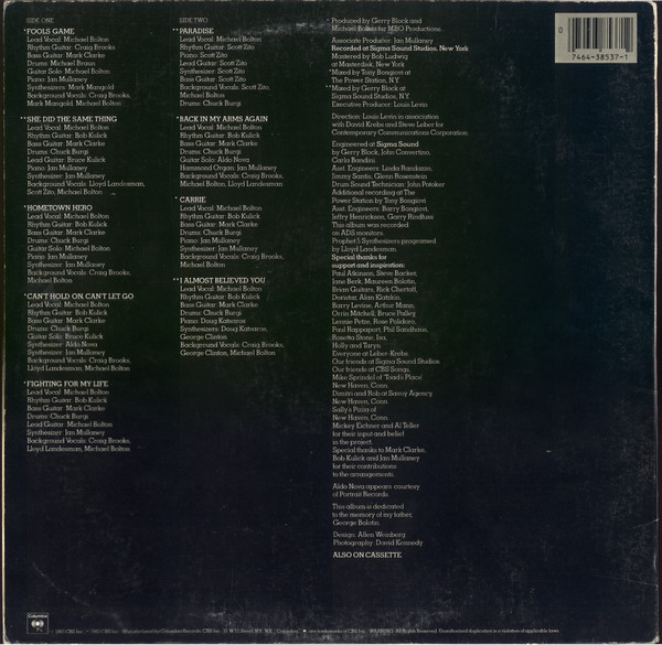 Backing Vocals – Craig Brooks Backing Vocals – Michael Bolton Backing Vocals – Lloyd Landesman Bass Guitar – Mark Clarke (2) Drums – Chuck Bürgi Guitar [Solo], Soloist – Bruce Kulick Lead Vocals – Michael Bolton Rhythm Guitar – Bob Kulick Synthesizer – Aldo Nova Synthesizer – Jan Mullaney Written-By – Michael Bolton |