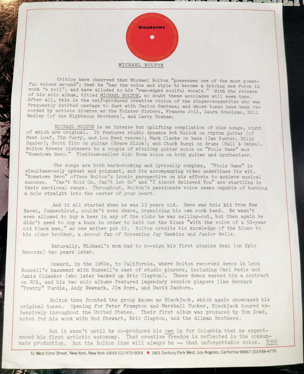 Backing Vocals – Michael Bolton Backing Vocals – Scott Zito Backing Vocals – Lloyd Landesman Bass Guitar – Mark Clarke (2) Drums – Chuck Bürgi Lead Guitar – Bruce Kulick Lead Vocals – Michael Bolton Piano – Jan Mullaney Rhythm Guitar – Bob Kulick Synthesizer – Jan Mullaney Written-By – Michael Bolton |