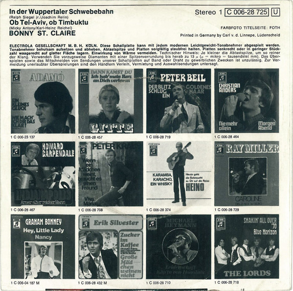 Bonnie St. Claire – In Der Wuppertaler Schwebebahn / Ob Tel-Aviv, Ob Timbuktu