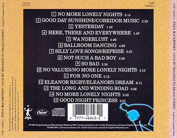 | Лейбл: | Capitol Records – CDP 7 46043 2 MPL (2) – CDP 7 46043 2 |