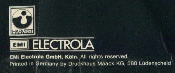 - Pressed By – EMI Electrola GmbH