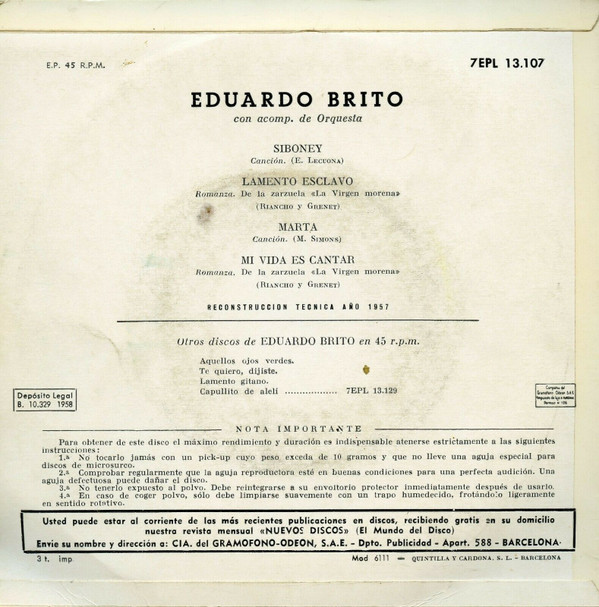 | Лейбл: | La Voz De Su Amo – 7EPL 13.107 |