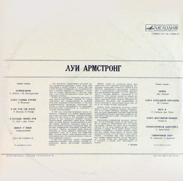- Pressed By – Всесоюзная Студия Грамзаписи