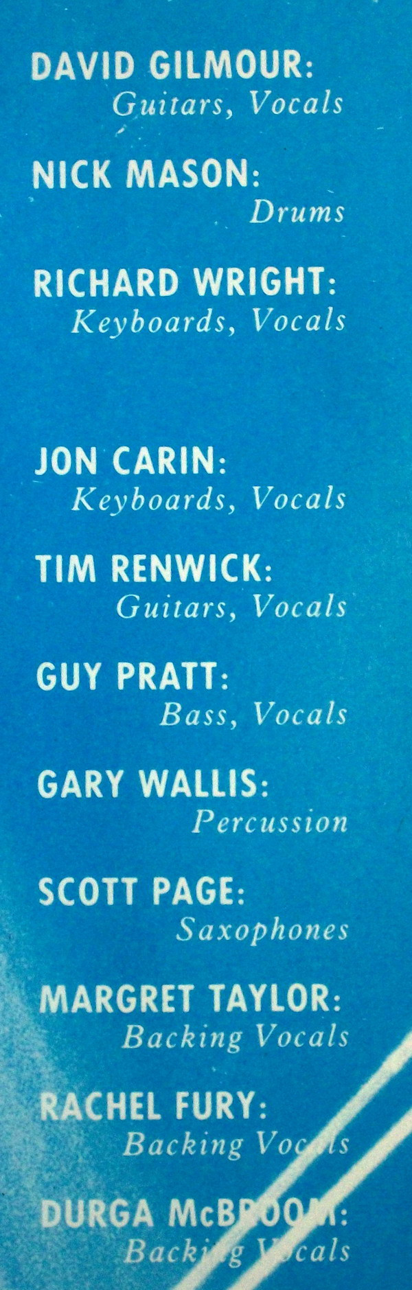 - Guitar [Guitars], Vocals – David Gilmour
