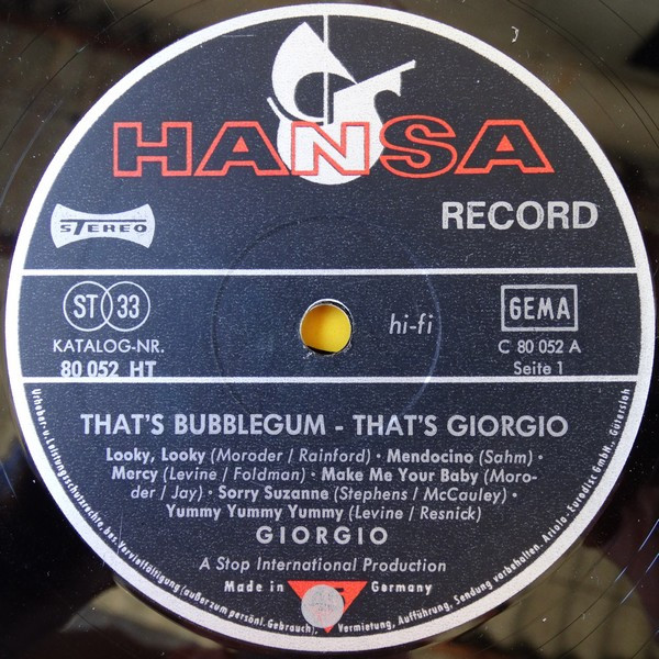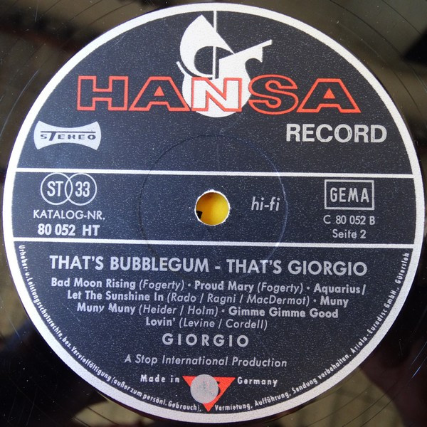 Giorgio Moroder – That's Bubble Gum - That's Giorgio