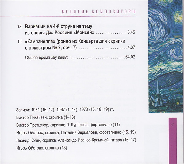 | 19 | «Кампанелла» (Рондо Из Концерта Для Скрипки С Оркестром № 2, Соч. 7) |