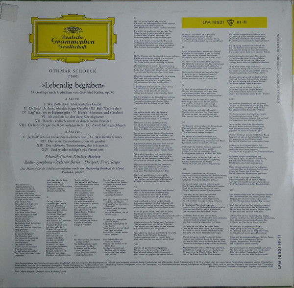 Othmar Schoeck – "Lebendig Begraben" - 14 Gesänge Nach Gedichten Von Gottfried Keller