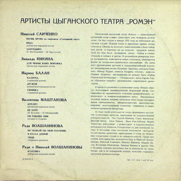 Лейбл: Мелодия – Д 024191-2
