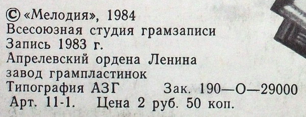 - Pressed By – Апрелевский Завод Грампластинок