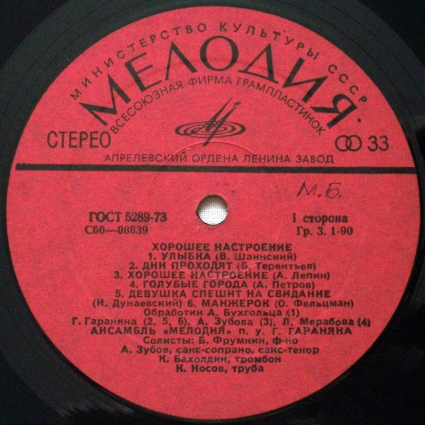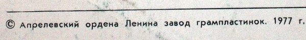 - Pressed By – Апрелевский Завод Грампластинок